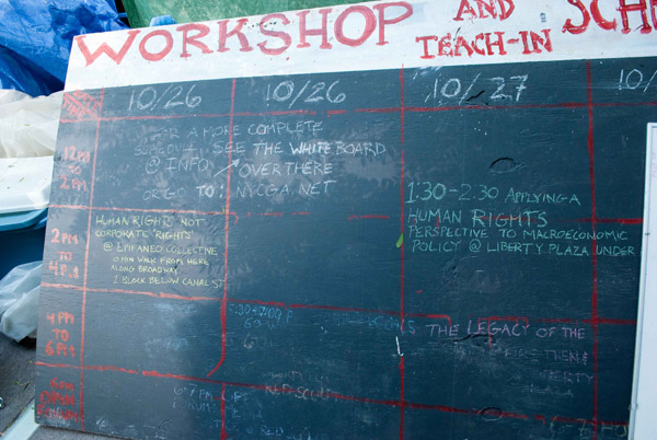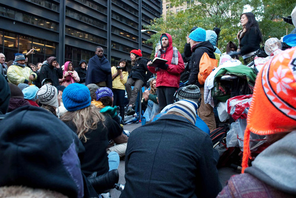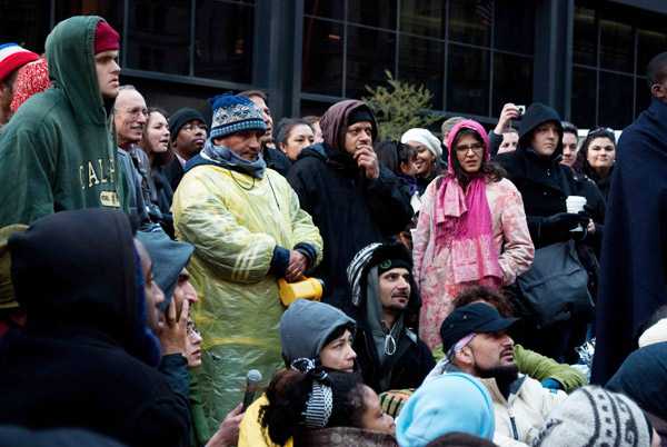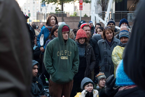 En resumen, lo que vi fue un grupo de personas pasando mucho frío, no tan jóvenes, no tan sanos y sin un mensaje claro para los mirones del mundo que estábamos ahí. No digo que esto sea lo que es OWS, sino la sensación que me quedó después de pasar un par de horas ahí.